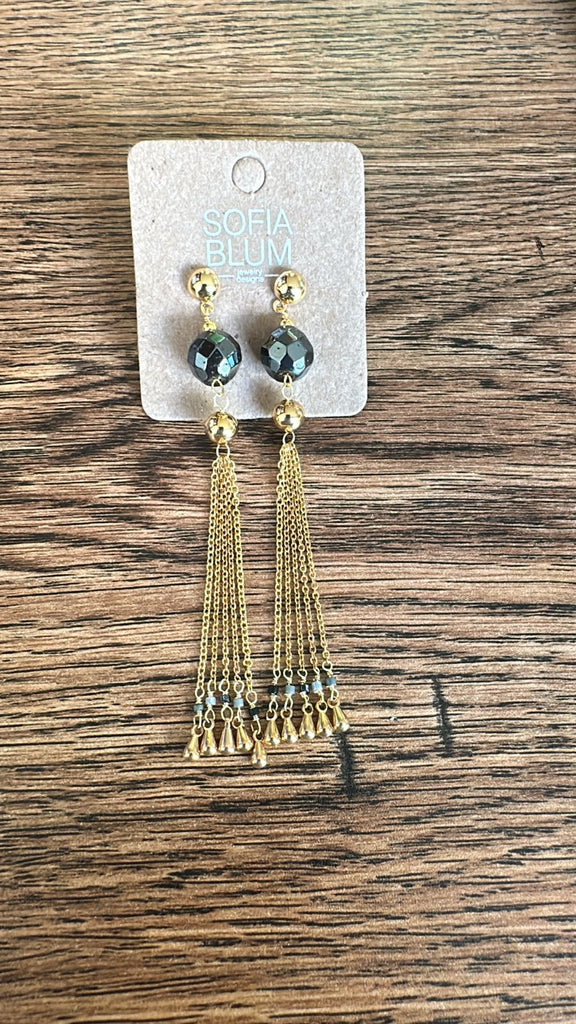 Aretes chapa de oro-7979-$296 Sofia Blum $ 296.00 Default Title - $ 296.00 Cantidad Este producto está agotado. Aretes colgantes de chapa de oro, con piedras negras grandes