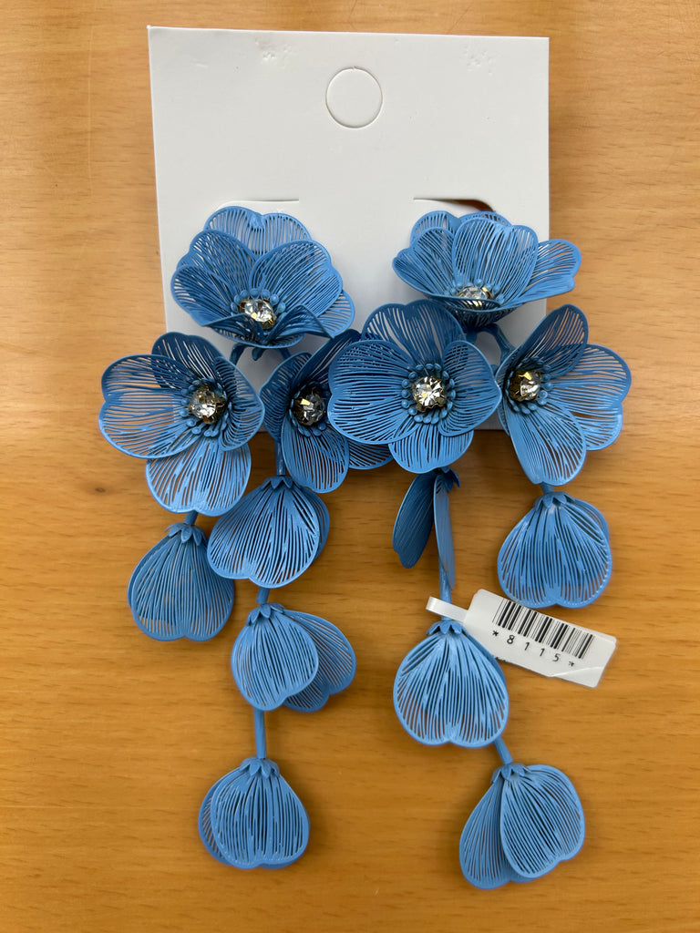 Aretes colgantes de chapa de oro, con diseño en forma de flor, color azul