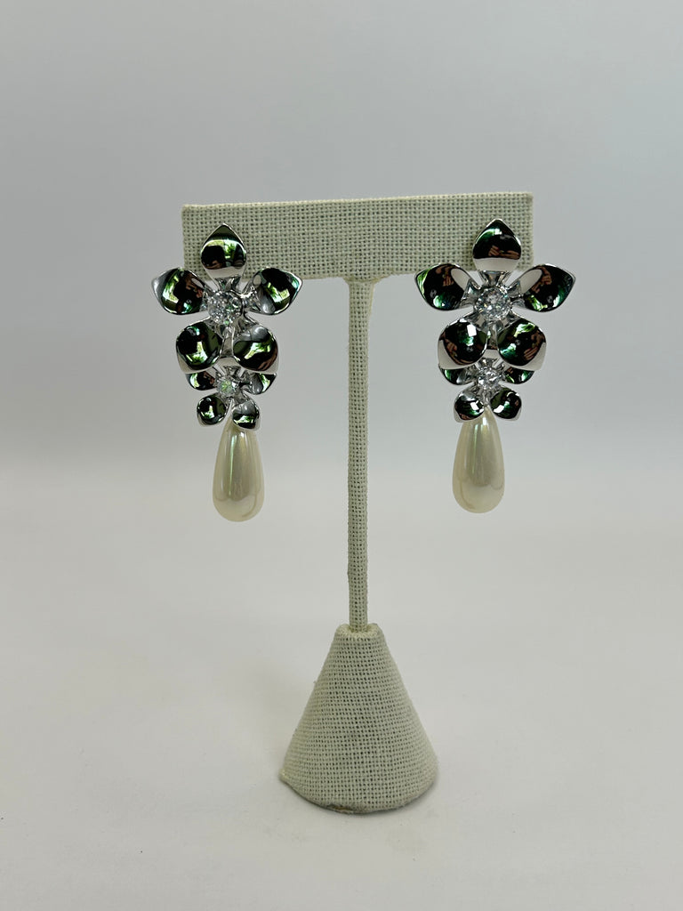 Aretes chapa de oro-8269a-$516 Sofia Blum $ 516.00 Default Title - $ 516.00 Cantidad Este producto está agotado. Aretes colgantes de chapa de oro, con diseño en forma de flor, color plateado con perlas