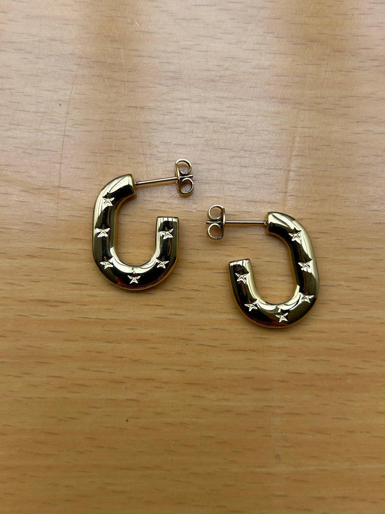 Aretes acero inoxidable-8111-$176 Sofia Blum $ 176.00 Default Title - $ 176.00 Cantidad Este producto está agotado. Aretes de acero inoxidable, semi óvalos con estrellas grabadas color dorado